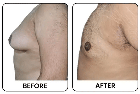 Grade 3 gynecomastia is a severe form of gynaecomastia and can be identified as significant breast enlargement, excess skin, breast sagging.